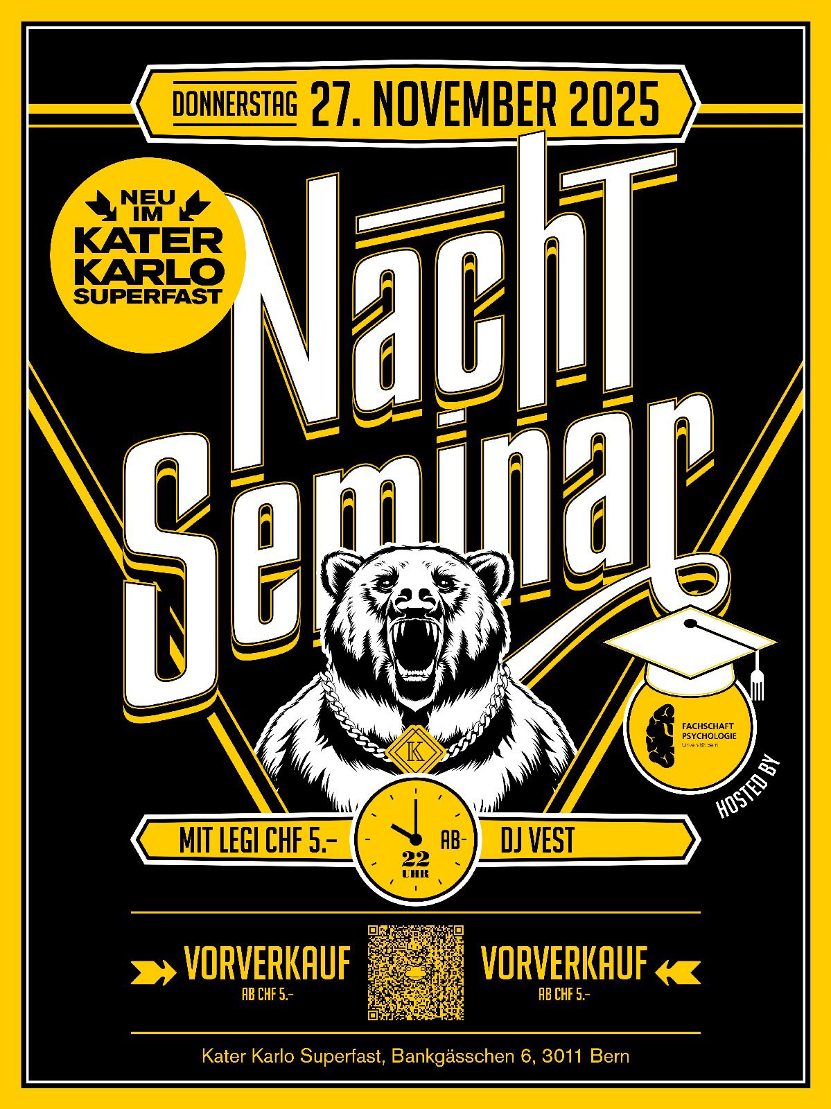 Wann: 27.November 2025, um 22:00 Uhr. Wo: Kater Karlo Superfast, Bankgässchen 6, 3011 Bern